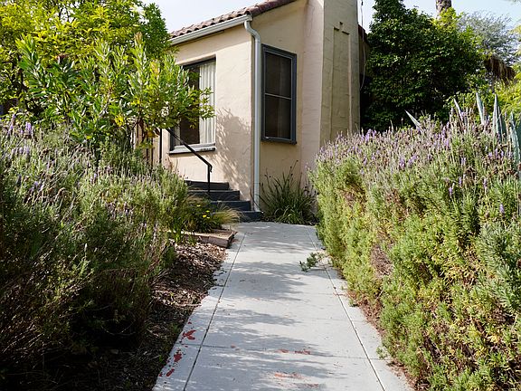 Spanish style 2 bedroom/1 bath home with fragrant drought tolerant garden on one of the most desireable corners of Atwater Village, between Glendale Blvd and Los Feliz. Vintage details abound in this well-maintained home: wood burning fireplace, arched entry to dining room, coved living room ceiling, original period lighting, hardwood floors, original tile in bath, built-ins. Fresh paint throughout. The garden abounds with lavendar and rosemary. Pick your own oranges, figs, lemons from the trees. Small laundry area leads to back patio. Front patio area surrounded by olive bushes for privacy. Yard not fenced. Located between Los Feliz and Glendale Blvd, it is an easy walk to the many shops and restaurants, post office, yoga studios, wine bars in Atwater Village. Hop on the 5, 134 or the 2 freeway in minutes. Enjoy the LA River bike trail a few short blocks away. CostCo, Silverlake Trader Joe's and Glendale malls are conveniently located nearby. Weekly farmer's market, diverse Atwater architecture and many shops make strolling the sidewalks of the neighborhood welcoming and fun.