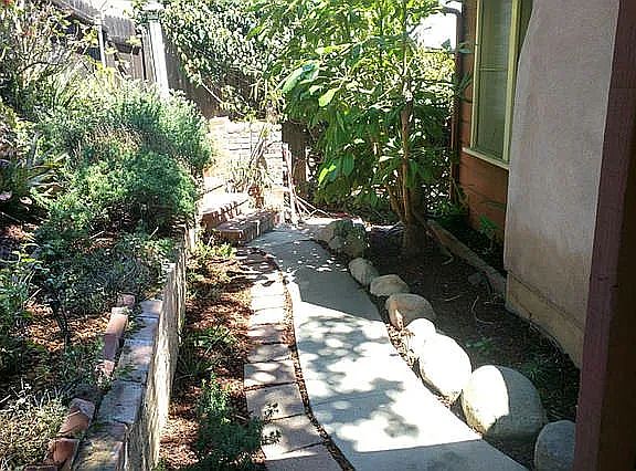 An inspiring oasis with lush multi-level gardens & patios, fruit trees