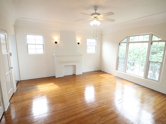 Faux fireplaceArt deco styleCompletely remodeled bathroomGranite counters in kitchenLots of closet spaceHardwood floorsCeiling fans throughout unit