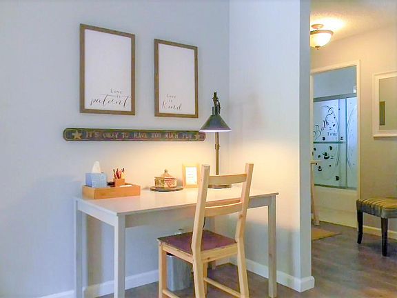 Warm, comfortable, upgraded unfurnished 1 bedroom/1 full bath with dining area, living room and NEW kitchen with refrigerator, dishwasher and oven. Bedroom has large walk-in closet.