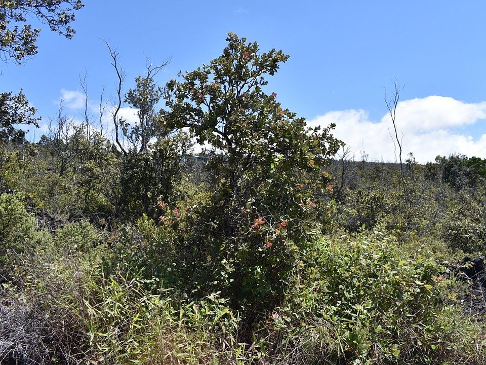 Hawaiian Ocean View Estates - here's a wide (122 x 356) vacant lot about halfway up into the subdivision with lots of ohia trees and other vegetation. This property sits up near the highest point of this block, so has the potential for a good ocean view. The SSPP share cost of $7,079.00 has been verified with Helco. Located just over an hour from Kailua-Kona with major shopping and many other services, including an international airport. Ka'u District is home to a black sand beach, green sand beach, the famous Punalu'u Bake Shop, Hana Hou Restaurant and many other small businesses. In Ocean View Town Center and Pohue Plaza you'll find several markets, gas stations, restaurants, hardware, a post office, bakery, thrift store and much more!
