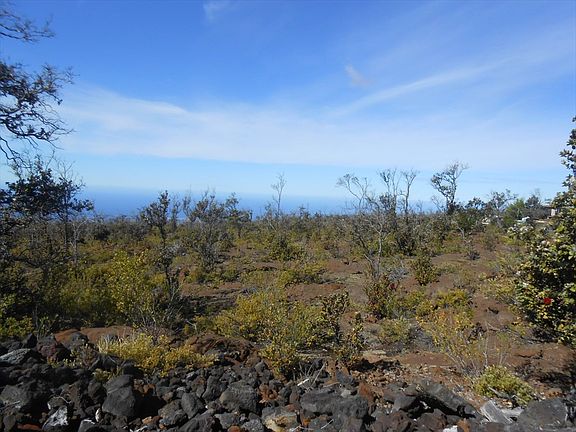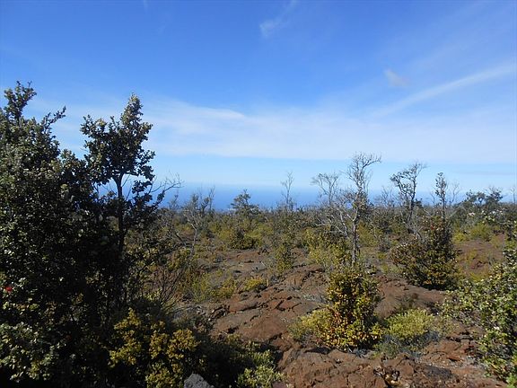 Two nice side by side lots at a reasonable price. Smooth pahoehoe lava, a smattering of small trees, and nice distant ocean views. Seller prefers to sell these two lots together, MLS 616448 and MLS 616451, each listed at $5,000. No staking or survey at this price, please. No seller disclosures. Lava Hazard Zone 2, water catchment area, and currently no nearby power.