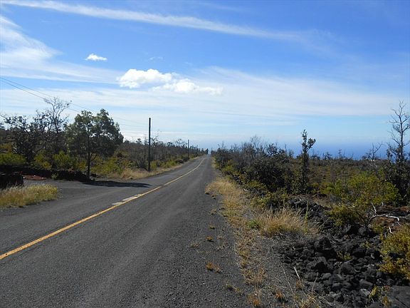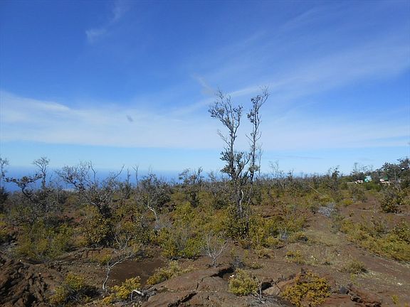 Two nice side by side lots at a reasonable price. Smooth pahoehoe lava, a smattering of small trees, and nice distant ocean views. Seller prefers to sell these two lots together, MLS 616448 and MLS 616451, each listed at $5,000. No staking or survey at this price, please. No seller disclosures. Lava Hazard Zone 2, water catchment area, and currently no nearby power.