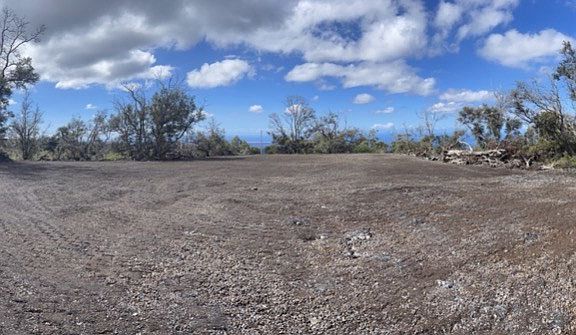A perfect pair, TMK's 3-9-2-104-11 and 3-9-2-104-12 Two lots sold together for $49,000 each. with dual access located approx.4 minutes from shopping centers. The Bull Dozed and rolled areas wrap around the outer & lower terraced perimeter, flowing upward to a desirable house pad that is Approximately 8000 square feet. The house pad is high above the street like a birds nest surrounded by Ohia trees, situated so that you can see the views in privacy. Beautifully forested with native plants and trees, these lots were carefully finished with security, beauty and function in mind. Power and internet are available. Amenities are available in Ocean View Town Center: Grocery, Ace Hardware, Coffee Shops, Reasturants etc.