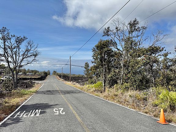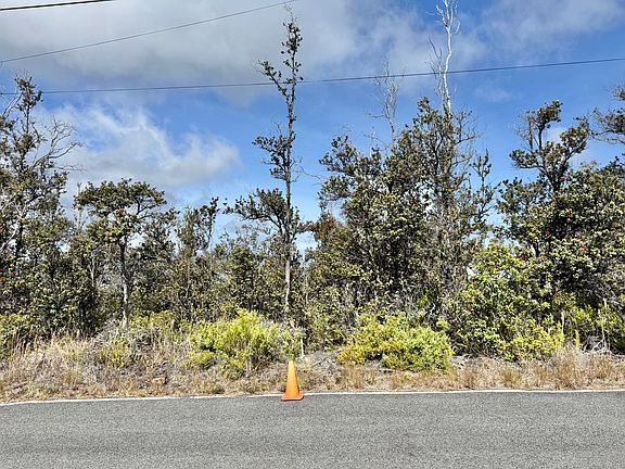 Corner Lot 36 Block 224 at Sea Breeze Parkway and Koa Lane at approximately 3,351 ft elevation with beautiful old Ohia trees in bloom, coastline and horizon view, Pole 33 providing overhead power, is in Lava Zone 2 and Flood Zone X for 23K.