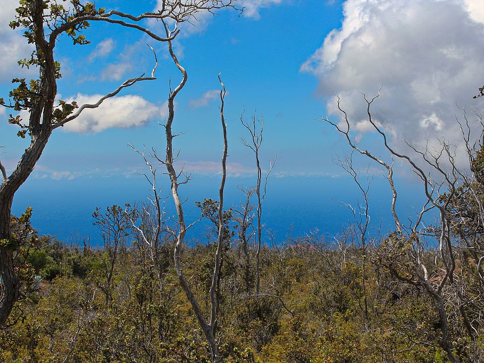 This property is vacant land with a nice pahoehoe flow and some 'a'a lava. Ohi'a trees. View of South Point from back of property. Coastline view to the SouthWest. Beautiful ocean views during the day... Amazing star gazing at night, dark enough to see the Milky Way! Mild days and cool nights. Can go off-grid with solar power! Seller also selling parcel 33 (MLS: 719453), which runs perpendicular to and abuts this parcel. Parcel 33 has two large openings into a large cave system! Price is $11,000 for each parcel.
