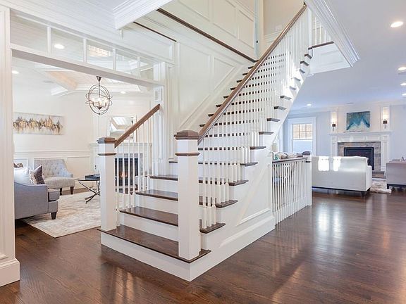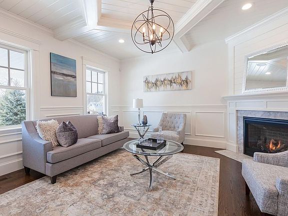 This breathtaking modern Farmhouse rests on a private 1.6 acre lot ready for immediate occupancy. Set on the location of the original Walker Farm this expertly designed and quality crafted home boasts a beautiful 60 foot farmers porch and four floors of finished living space; with 3.25" wood flooring throughout, custom millwork, and three gas fireplaces. The Gourmet Kitchen includes 2 dishwashers, Subzero, Wolf cooktop, and direct access to the stone patio for el fresco dining overlooking the professionally landscaped yard. The first floor includes formal and informal living spaces, dining room and a private study. The second floor has 5 bedrooms including a spacious fireplaced master suite complete with walk in closet, large bath, and built-in coffee bar. Finished lower level includes exercise room, family room, pre-wired media room, and a full bath. Enjoy 2nd floor laundry, finished 3rd floor bonus space, and a 3-car garage. Home is convenient to shopping and major routes.