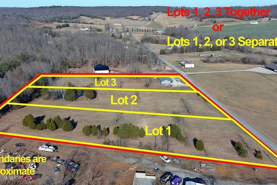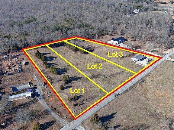 Close to WAX MARINA near Nolin Lake. 3 lots totaling 6.8 acres. Huge 60 x 30 concrete block garage/shop with metal roof. Featuring 3 overhead bay doors, plus overhang for additional covered parking. Utilities available near property. Easy access to road. Lots of opportunities!