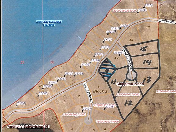 Great opportunity to own a parcel with 5 Back Lots just off of Chippewa Road on East Battle Lake. Roughly 7.5 acres in this parcel (platted and divided into 5 lots) will provide opportunity for building storage spaces. This 5 Lot parcel will be split from a parcel with 6 Lots at the time of sale. Please view accompanied by your favorite agent or call today for a showing.