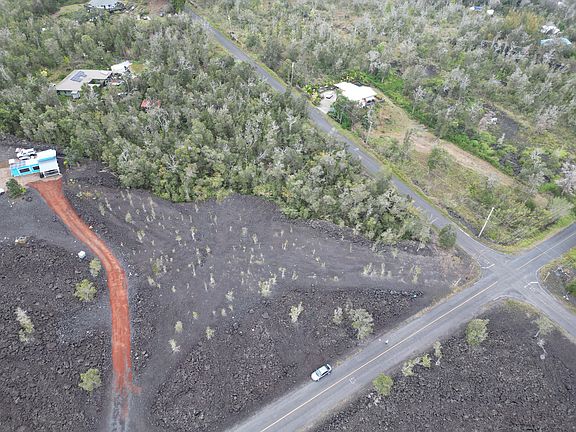 Wide corner acre in lower Hawaiian Ocean View Estates. Old dozing diagonally across front of parcel from corner allows access immediately. The back 2/3s of lot is filled with native forest and plenty of room to develop. Power ends at intersection of Kona Drive and Lotus Blossom so grid is close or alternative energy is a possibility. Lot has big ocean views to the west and attractive homes in the area. Location is very convenient for local amenities at Ocean View Town Center and adjacent to Highway 11 for public bus or drive into our nearest larger town, Kailua-Kona. Ocean View is a developing rural area with large lots, reasonable prices and a great climate!