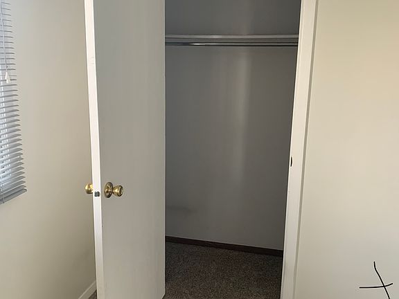 Dimensions of room for rent: 11x10 (approximately). The room is carpeted, has ceiling fans and blinds, and is very sunny. There is one closet in the room. The home is tri-level with the shared areas on the ground floor, rooms for rent on their own floor, and landlord's room and office on a separate floor. House has a whole house fan, AC, and forced air heat.