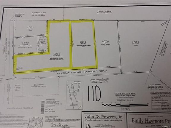 Sellers have 2 lots for sale. This listing is for lot 3. Lot 5 is on a separate MSL listing. Lot 3 has 133.0 feet of paved road frontage on Lovette Road. The balance of the access is on private soil road named Haymore Road which is a 45' Private road noted on survey map. Lot 3 was previously 2 lots, lot 3 and lot 4. The area of lot 3 would not perc but lot 4 would. Our client combined both lots which now contains 2.31 acres.