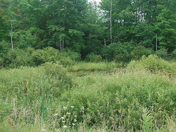 10 acres adjacent to hundreds of acres of state land in Springfield Twp. Spring Creek runs through parcel, plus large natural pond & wetland. Higher ground w/mixed hardwoods & pines near NE corner of property could be possible building site or hunting camp. Near Manistee River & 7 miles to Fife Lake village.