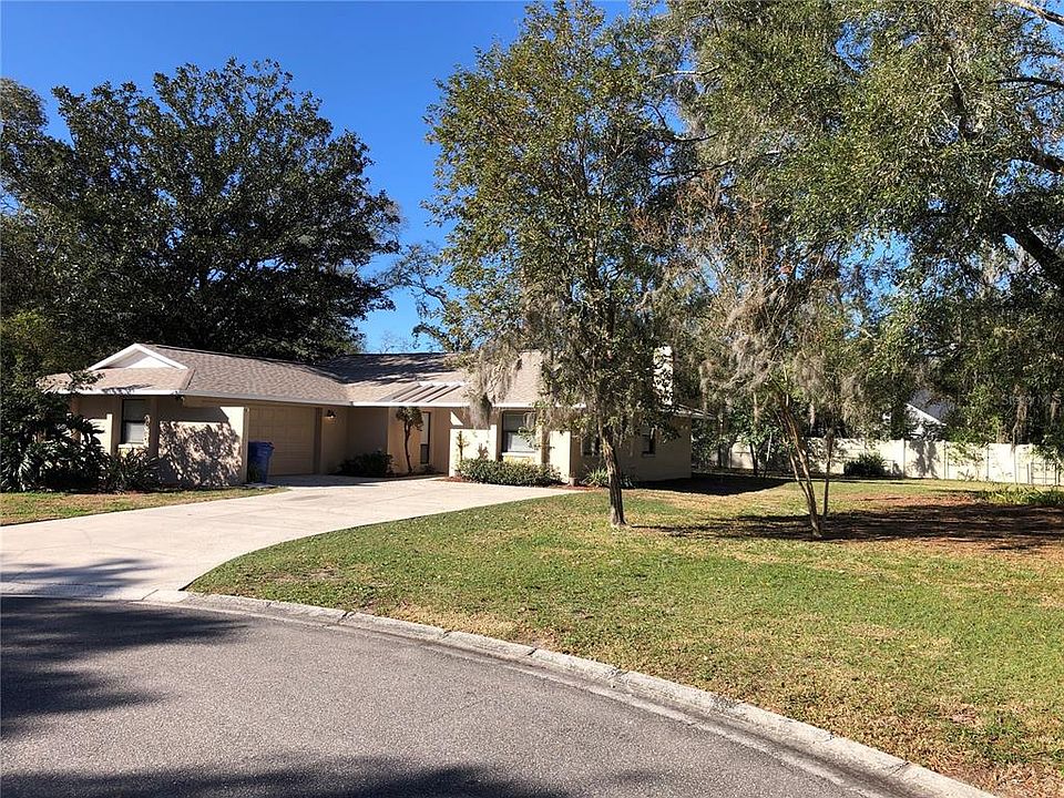 Country Comfort, City Convenience!! 3 bedroom, 2 bath home with 2 car garage on very large lot -195x132- of .53 acres on a Cul- de- Sac in well kept community of 18 homes. NO HOA fees or HOA rules. NO CDD. Room for boat, RV, workshop, pool, or work trailer with no hassle. NEW Dimensional Shingle ROOF over total house and lanai in January 2023. New window blinds thru out most of house. Whole house has either tile flooring or laminate flooring except the Master bedroom-It has new carpeting. Home has been totally repainted- inside from ceilings, doors, baseboards door trim to all surfaces outside, even mailbox. All surfaces in garage repainted except floor. Spacious 21x12 screened porch/lanai with trussed roof and painted floor. Formal Dining room is 13x11 with diagonally set floor tile. Living room/Family room has wood burning fireplace with stacked stone hearth. Large Master bedroom is 13x16 with very large walk-in closet. Spacious kitchen features plentiful cabinets and counter space plus a center prep island. All kitchen appliances stay, including glass cook top with oven, dishwasher and refrigerator. Large "L" shaped -walk-in pantry with new shelving. Large dinette area adjacent to kitchen area. Multiple windows thru home and open floor plan allow for much natural light. Ceiling fans in most rooms of house. Twin French doors open to large lanai. and totally Private backyard. Lot is 164x140 with huge Magnolia tree, mature oaks and other trees. 2Car garage has drop down stairs to attic area and pedestrian door to outside. Clothes washer and dryer included along with built-in ironing board that drops down out of wall. Pre-plumbing in garage for utility sink. Whole house water filter system and well tank in garage. Home has septic for sewer. Convenient location to great schools, 30 minutes to downtown Tampa, USF, Busch Gardens, Tampa International airport, Tampa Premium Outlet Mall, box stores, food stores, home improvement stores, plus dozens of restaurants. County recreational facility and Regional library also close-by.