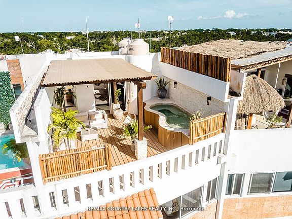 Discover this stunning 3-bedroom, 3-bath penthouse designed for both luxury living and exceptional investment opportunity. Offering over 1,600 sq. ft. of indoor-outdoor space, this residence includes a versatile lock-off suite, providing flexibility for personal use and maximizing rental income potential. The open-concept living area flows seamlessly onto a spacious balcony, ideal for enjoying your morning coffee or evening cocktails. A spiral staircase connects to your private rooftop terrace, featuring a Jacuzzi, lounge area, and plenty of space for entertaining or soaking up the sun. Inside, you'll find a fully equipped kitchen with premium appliances, a separate laundry room with stackable washer and dryer, tile flooring, and high-quality finishes that are stylish, durable, and easy to maintain. The unit overlooks a large communal pool surrounded by beautifully landscaped tropical gardens, enhancing the resort-like atmosphere. Perfectly situated, this property is within easy walking distance of shops, restaurants, public transportation, and a multi-sport complex. The condo building itself offers gated entry, reserved parking, 24-hour security, and a quiet, safe environment features that appeal strongly to both owners and renters. With the new Tulum International Airport now offering direct flights from Air Canada, accessibility has never been easier. The lock-off design and sought-after location make this penthouse an excellent choice for generating steady rental income while also enjoying your own tropical getaway. Price is in Canadian Dollars.