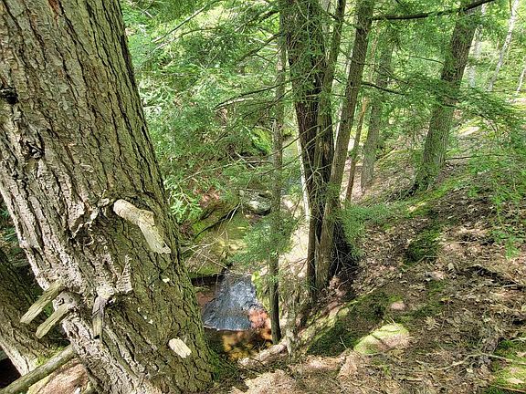 This beautifully wooded 150 acre parcel is located near the historic Quincy Mill ruins and Quincy Mining Dredge Number One and Two and is bisected by the former right-of-way of the Copper Range Railroad, now ORV Trail 3, owned by the Michigan DNR. This beautiful forest consists of mostly mature sugar and red maples with pockets of red oak, aspen, paper birch and ash. Wildlife abounds throughout the property. Everything from small songbirds, fish, grouse, to fishers and larger game like white-tail deer and bear can be found here. The variety of food sources, mixed terrain, woods, wetlands and streams found on this parcel provides a great habitat for many animals. Water features, seasonal and year round, can be found throughout the acreage. Including a waterfall nestled in a ravine surrounded by woods above the former Quincy Mill location.