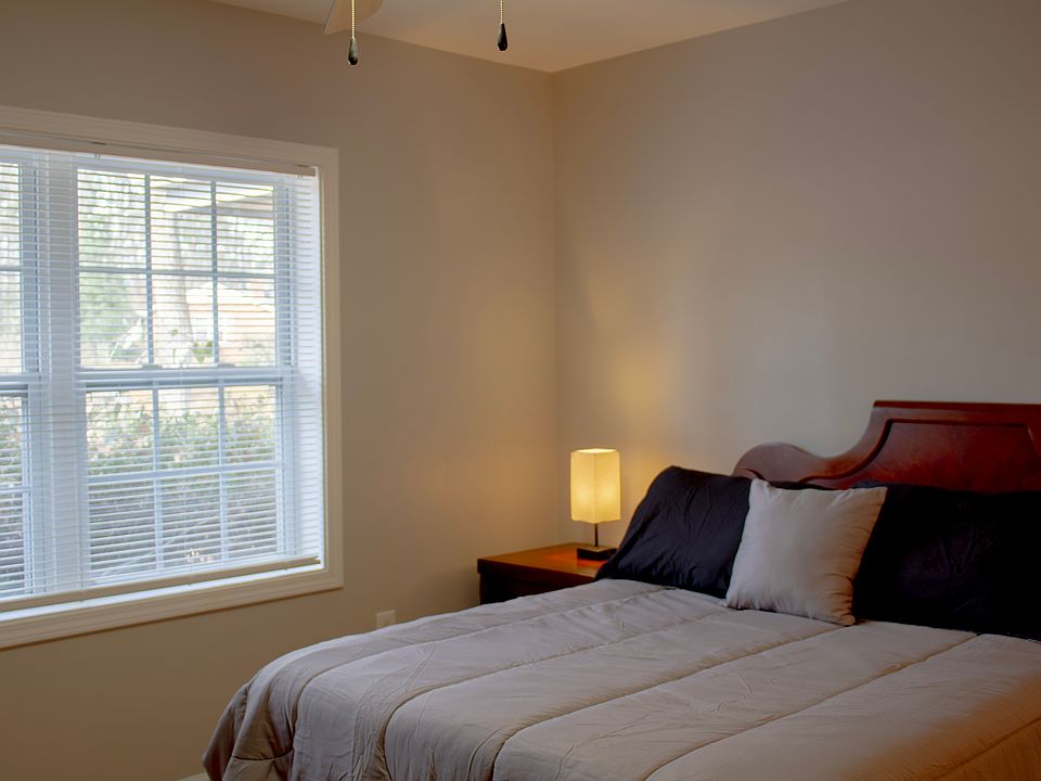 Bedroom and bath are located on ground level. Wood flooring in bedroom and brick flooring in bathroom. Bedroom includes a full size bed with 12" medium firm hybrid mattress, 50" Smart TV, dresser and night stand. This room has a private entrance from carport and bathroom is located directly across from bedroom. Home is very spacious. This is the only bedroom/bath on ground level; therefore, the entire home is easily accessible. You will have full access to entire home including but not limited to kitchen, living room, dining room, front and back yard.