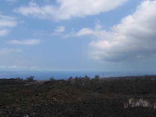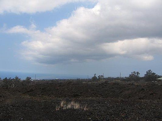 Great views from upper Hawaiian Ocean View Ranchos. Scattered native trees, baby mango trees, circular drive and dozed housepad. Large water tank is included. Easy to develope and build your dream home.