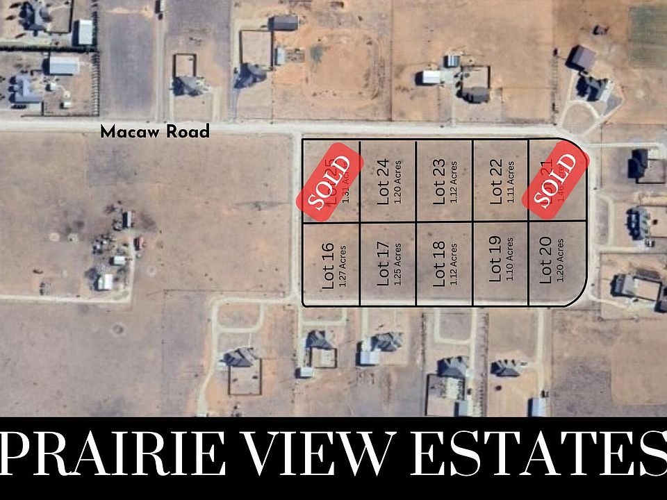 Build Your Dream Home in Prairie View Estates! Ten one+ acre lots available in this premier subdivision, a quick 20 minute drive from Lubbock but worlds apart- Minimum 1800 sq ft home- One large or two small animals per acre- Get your country on and enjoy life at a little slower pace...great place to put down some roots and savor the sunsets!