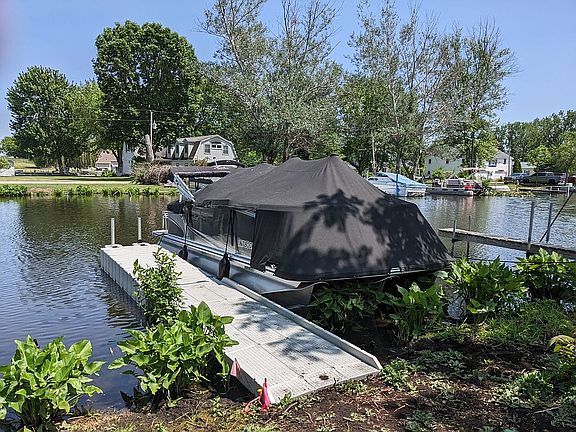 Unimproved 80x120 residential lot with deeded boat lot on Lake Wawasee. Building lot is on Mad Hatter Drive, Cromwell and Boat lot is 15' wide on Long John Silver Trail. Boat lot has been cleared of overgrown brush and a floating pier was added in June 2023. Boat in picture is NOT for sale.