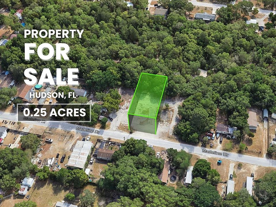 These Cleared Lots with Public Utilities and Electricity Available are ready for your vision. In addition to this parcel, the seller is also offering 2 adjacent lots for sale, giving you the chance to combine them into a larger homesite of approximately 0.75 Acres. Ideally located on Madeline Drive in Hudson, just off US-19 and Little Road and directly across from SunWest Park, this vacant homesite offers both convenience and flexibility. Situated on a Paved Road and zoned AR (Agricultural Residential), you can build a Site-Built Home or place a Manufactured/Mobile Home. With No HOA, No CDD, No Flood Zone Insurance Requirement, and No Time Limit to Build, you have maximum flexibility for development. The location makes this property ideal for a Rental Property, Airbnb, Seasonal Home, or Primary Residence, as well as a smart Long-Term Investment. Qualified buyers can purchase with as little as 20% down, making ownership more accessible than ever. Conveniently close to shopping, dining, medical facilities, beaches, and marinas—all within easy reach of Tampa and surrounding areas.