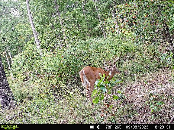 Wet weather waterfallEstablished trail systemRock outcroppingsDeep ravineLarge food plot