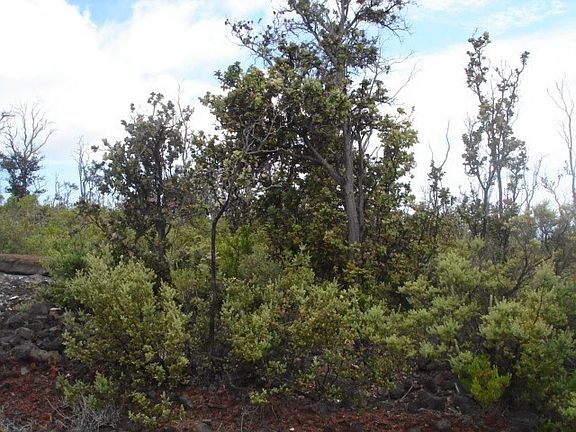 Nice quiet location in the upper 1/3 of the subdivision. On Mahimahi between Koa and Plumeria. Makai side. Cool nites and warm days. Distant coastal views. there is lots of small to medium growth Ohia and other native plants. Mostly Pahoehoe lava, which makes for great walking paths. and slopes gently down. Must be sold together for a three acre estate, all your own!! Still affordable land inn Hawaii Nei