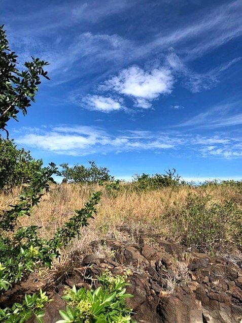 Spacious, open lot is above street level and covered with grasses, a few medium sized trees and shrubs. Both pahoehoe and a'a lava on lot and overall, fairly level upper area. Un-blockable ocean views, power on street so easy to develop and start enjoying life in rural Hawaii. Many recreational opportunities are nearby; fishing, hiking, boating and surfing. Plus National and State Parks and Reserves. Ocean View Town Center has all necessary amenities and more shopping options are available in Kailua-Kona and Hilo. A friendly community for full or part time living.