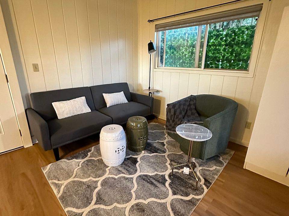 Newly renovated charming attached studio with private entrance, clean, bright, airy, PARTIALLY furnished, with new kitchenette appliances, new bathroom upgrades, new LVP wood flooring thru out, exposed beams, easy on-street parking. Utilities incl: electricity, wifi, water, refuge, yard maintenance & pest control. Great location in Pukalani. Very convenient to grocery/ hardware store, park, banks, post office, bus stop and laundry mat. Easy drive to beach, hiking & island wide activities. NO pets. SMOKE FREE environment throughout the property (incl e-cigarettes/vapes & other paraphernalia). DRUG FREE environment. Not HUD approved. Space comfortably accommodates a single professional person. Employment must be verified. For qualified applicant there is a non-refundable processing fee $45 which incl.: background/credit/eviction report. Move in requires 1 month's rent of $1650 (add'l fee for add'l persons) plus $1650 for security deposit. Expedite a response with letting us know: how many in your party, length of your rental request & employment status. As a result of overwhelming interest we are strongly requesting for interested parties to send your response via email and with a CONTACT PHONE NUMBER or text. The unit is currently occupied so we'll only be doing showings to serious applicants. We are contacting qualified applicants daily. Mahalo.