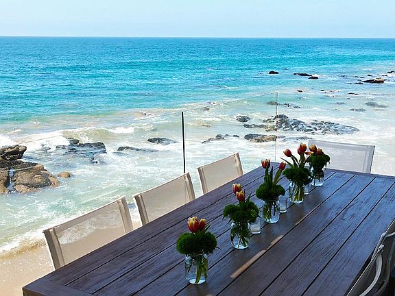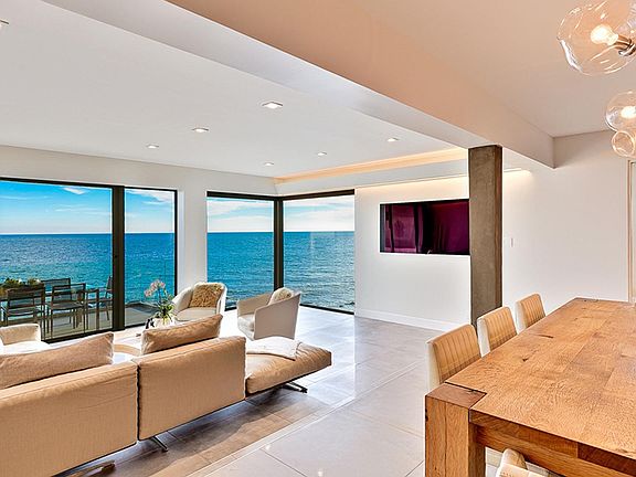 Breathtaking newly remodeled beachside villa on sandy Las Flores beach, with aprx 50 ft of beach frontage, spacious entertaining areas, 5 decks and panoramic ocean views. Enjoy the dolphins play while waves gently roll over natural rocks peeking out of the water, adding to the beauty of the Malibu coastline. The home located on PCH has 4 bedrooms/ 4 baths, plus private downstairs guest quarters (studio) complete with kitchen and bath, leading out to large beach level deck See rental agreement