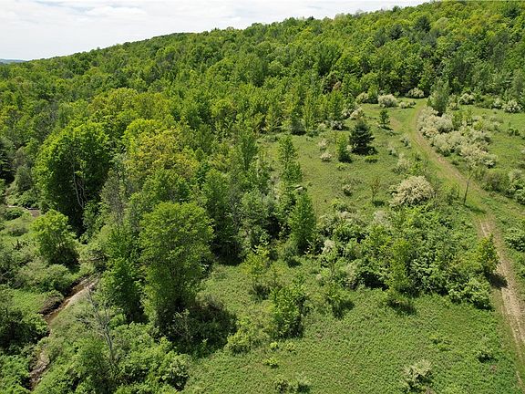 Welcome to this expansive 100-acre tract of land now available. It has served the current owners well since the 1980's. This property has been a treasure where the topography unfolds into a tapestry of trails, food plot meadows, whispering woodlands, and panoramic mountain views. Utilized as a hunting playground and seasonal camp this land has been a gathering site for family and friends to enjoy. The recreation of this property can seem endless as it is situated directly along the edge of the pristine Maple Hill State Forest. This remarkable parcel offers both seclusion and a gateway to over 600 acres of protected wilderness. There are approximately 10 acres of flatter topography in the front with over 380 ft of road frontage. A creek flows the width of the property sitting 220 ft from the road allowing for the possibility of building a home or barn. The seasonal camp sits secluded from the road, nearly 1165 ft. Traveling through some of the established trails on foot or ATV make this property easier to navigate. A mixture of tree species canopy the land and some areas where other trees could be planted to continue the a sanctuary where the wild life can continue to linger and grow. A rural location yet close to amenities make this property the best of both worlds. Elmira is less than 15 minutes away while Horseheads and Owego sit 30 minutes from the property. A sportsman’s sanctuary, this mixed landscape offers great hunting and year-round outdoor pursuits and adventures just beyond your doorstep. Whether you're seeking a place to build, explore, or preserve, this property delivers peace, promise, and the spirit of the land. Contact us today to schedule your walk of the land today.