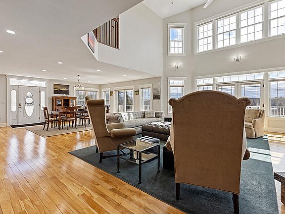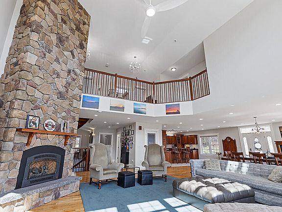 An extraordinary blend of timeless elegance & grandeur, this stately residence gracefully crowns 18 gorgeous acres situated in a tranquil setting yet is 7 mins to 95. It features a seamless flow for entertaining large parties from inside to out w the 2 decks & walkout basement. The home boasts a impressive design w meticulous attention to detail. The 1st floor features open concept living which offers a large chef's kitchen w custom cabinetry, granite countertops, stainless steel JennAir appliance & walk-in pantry. A spacious dining room, a magnificent great room w a three-story fieldstone fireplace, windows floor to ceiling & has a double door cascading out to the extensive front deck w gorgeous views. The 1st floor primary suite w has stained-glass double door entry w an ensuite bath featuring a whirlpool tub, walk-in shower, double vanity, walk-in closet & also provides front deck access. Additional amenities on the main level include a billiard room, half bath, & laundry room w walk-in closet. Notable features include a three-story custom spiral staircase, & a large sleek ceiling fan. Want to change out the ceiling fan for a luxury chandelier no worries there is one in the garage if you choose. Upstairs hosts 2 spacious bedroom suites each have their own full bath & double closet, also an office area that overlooks the living room & has stunning views through the massive windows. Above the attached 3 car garage is a finished bonus room generous in size w a heat pump. The basement features a large open family room ready to be outfitted w an additional kitchen, has a half bath, a walk-in cedar closet, a gas-insert fireplace, & an expansive bedroom being used as a workout space at this time, all w radiant heat & separate exterior access, making it ideal for guest accommodations. The backyard has a newly built spacious composite deck & fenced in back yard w lighting and ice staking pond. The home is 10 mins to State Capital, 15mins to hospitals and shopping.