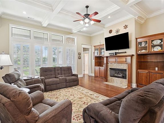 Step inside this wonderfully maintained home and see for yourself how it could be the perfect place to call your own. The spacious living area features stunning wood floors and soaring 12-foot coffered ceilings, creating a warm yet sophisticated atmosphere. Enjoy meals in the large breakfast area, freeing up the formal dining room for other uses-currently styled as a cozy sitting room.Recent updates include a new roof (October 2024) and a new dishwasher, offering peace of mind. The home also includes rear yard access, perfect for outdoor activities or future expansions. Located in a welcoming community with fantastic amenities such as a pool, playground and quick access to I-12, this home combines comfort, style and convenience.