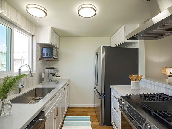 Wonderful opportunity to live a few doors to the Manhattan Beach Strand. Just a short walk to Downtown Manhattan Beach pier, shops, and restaurants. Newly renovated throughout with new flooring, kitchen, bathrooms, windows, and fireplace. Three car parking - rare this close to the beach. Ocean views from kitchen, living, dining rooms. Sunny throughout with 3 bedrooms, 2 baths, and a family room.