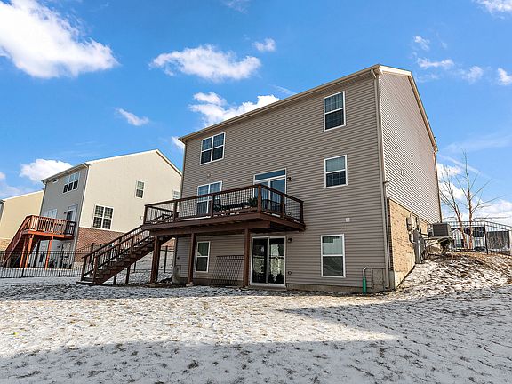 You will think you walked into a model home as you enter this contemporary Ontario model featuring an open concept floor plan. With a spacious main level complete with well-appointed kitchen with Quartz countertops, 42inch Aristokraft cabinets, plenty of counterspace, tile backsplash and undermount sink. With a warm and welcoming living room plus a flex room, there is plenty of space! A half bath and laundry completes the main level. Upstairs you will find a cozy loft perfect for a home office or playroom plus two spacious secondary bedrooms with full bath and a master suite complete with huge walk-in closet complete with organizer system and full bath with private commode, linen closet and double sinks. The walk-out basement is partially finished and has a passive radon system already installed. The fully fenced yard and deck off the kitchen make summer parties something to look forward to! Some of the upgrades from the builder include center island in kitchen, recessed lighting, panel doors, vinyl plank flooring, extra windows in the living room, wrought iron railings on staircase. Upgrades from the seller include the partially finished basement, custom deck off kitchen and fenced yard, closet organizer in master bedroom, extra cabinets/workspace and storage in garage, crown molding and lighting in bedroom 2. This is a smart home featuring ring doorbell, wireless entry, remote thermostat, and smart garage.