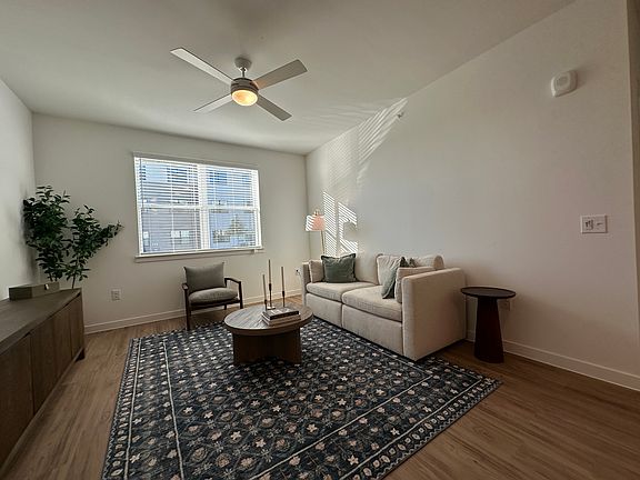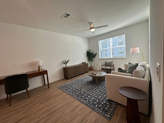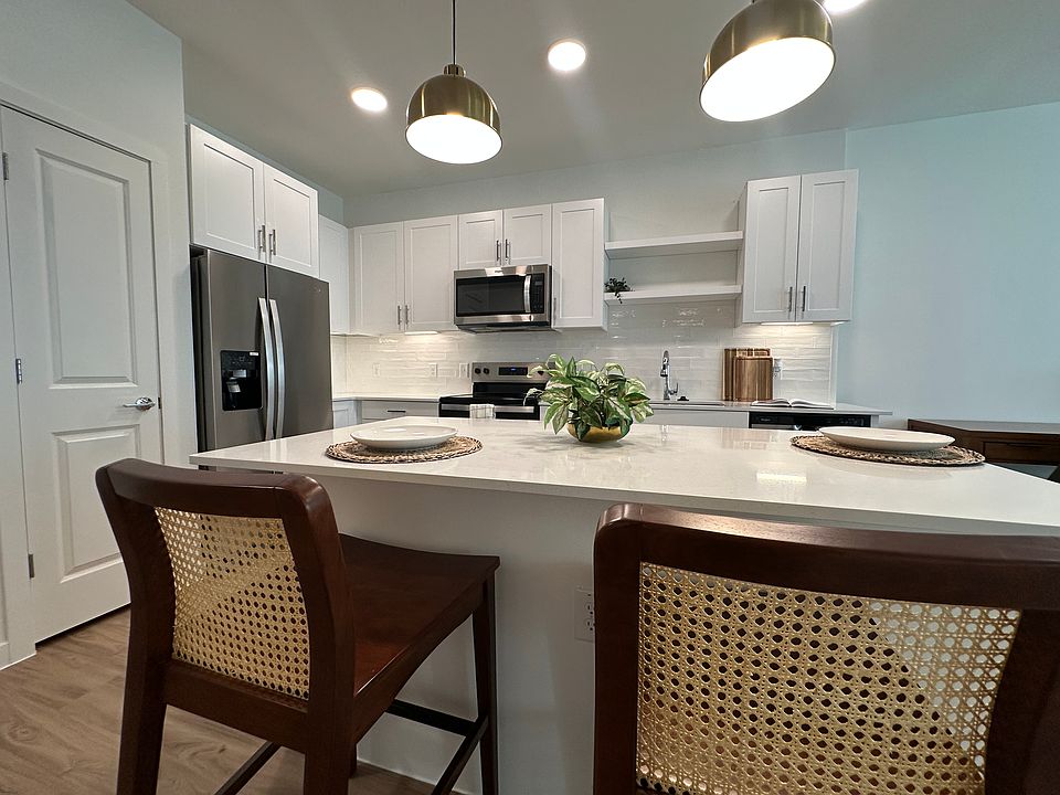 High ceilingsOpen-concept floor planGenerous living spaceQuartz countertopsWood-style flooringFull-size washer and dryerAmple storage