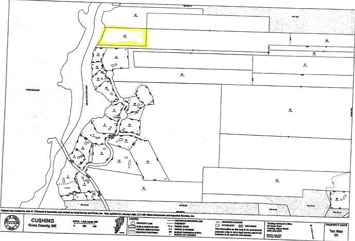 This 6.74+/- acre lot is owned by the Town of Cushing. It is located on a private road with water frontage. There is no known access to this property. It will be a buyer's responsibility to obtain access permission.
