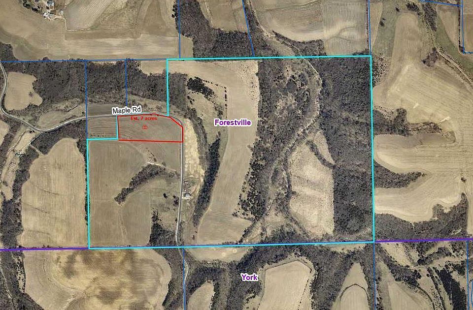 Come for the beautiful views and design your new home or cabin on Maple Road in the Forestville area that includes a buildable LOT with an estimated 7 Acres. Great pasture land for horses or currently being farmed for alfalfa. This property is located 14 miles from Spring Valley and Preston and is just 5 miles south of the Forestville State Park, Mystery Cave and about 40 minutes to Rochester. A lot of great trout streams around the area as well! Come and build your dream home with amazing views or a Cabin for your weekend getaway!