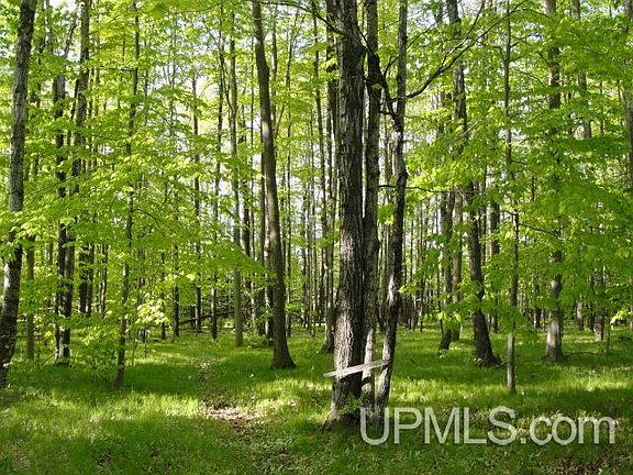 A great price for 75+ acres of prime hunting land. Mostly high land w/mature of hardwoods for a diverse mixture of land. Adjoins 100's of acres of public County Land to the west and south. There's a grassy driveway into an area perked for a 3 BR home. Property is currently enrolled in a Closed Managed Forest program for minimal taxes but has 2+ acres out for the possibility for future development. Provides year round access with electric and phone along the blacktop rd. In a great recreational area; has ATV trail access, close to two golf courses, and only 1 mile from the boat landing to the Menominee River.