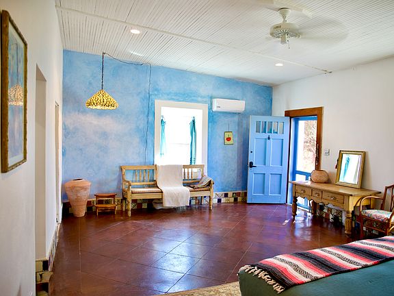 Spacious one-bedroom homeThoughtfully restored historic adobeFarmhouse sinkLed medicine cabinetAmple storageCeramic sconcesHeirloom rugs