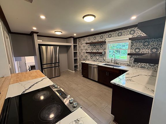 Recently renovated 4BR/2.5BA home on a .69-acre private lot in Marietta. Features hardwood floors throughout the main living area and all four bedrooms. Open kitchen, family, and dining area ideal for modern living. Lower level includes a spacious entertainment room with bar. Cozy den with fireplace opens to an expanded patio, perfect for outdoor entertaining. Freshly painted throughout. Conveniently located just minutes from shopping, restaurants, I-75, and the Braves stadium.