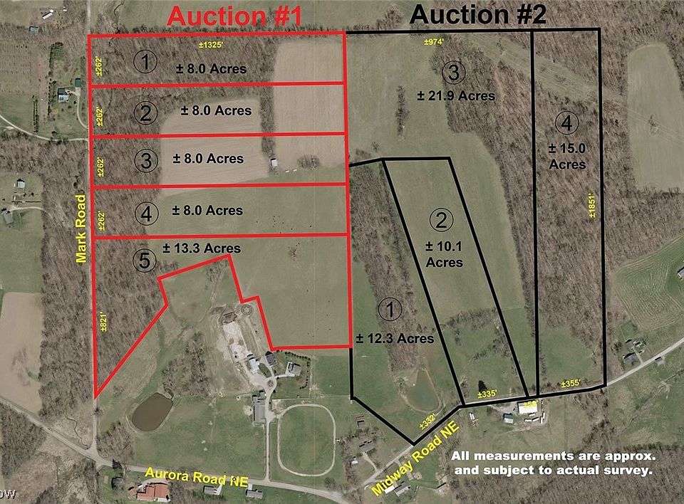 104 Acres of Productive Farmland, Building Sites, Wooded Land with Wildlife, High-Tensile Fence, 24 X 32 Pole Building, Laredo Camper, Spring-Fed Pond, Fantastic Views, East Twp., Carroll Co. - Auction #1: 45 Acres – Mark Rd. - Auction #2: 59 Acres – Midway Rd. NE - Both in Kensington, OH – Offered Separate & Together - Live Auction with Online Bidding Available. ABSOLUTE AUCTION, all sells to the highest bidder on location. ONLINE BIDDING BEGINS WEDNESDAY, MAY 15, 2024 – 10:00 AM and AUCTION LIVE ON-SITE BIDDING WILL BEGIN SATURDAY, MAY 18, 2024, 11:00 AM. Auction #1: 45 acres on Mark Rd. Open and wooded land with 24 X 32 pole building. Loads of road frontage. Good alfalfa hay seeding, abundance of wildlife, panoramic views. Divided as follows:
