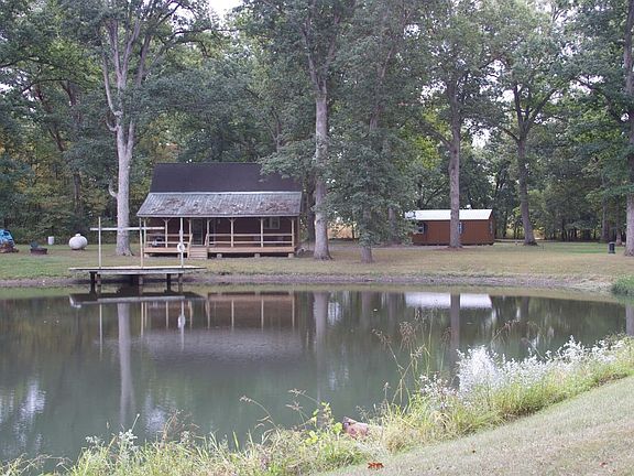 Rustic main cabinOne acre stocked pondLoft bedroomCamper hookupsPicnic tableAdditional cabinsLarge mature oaks