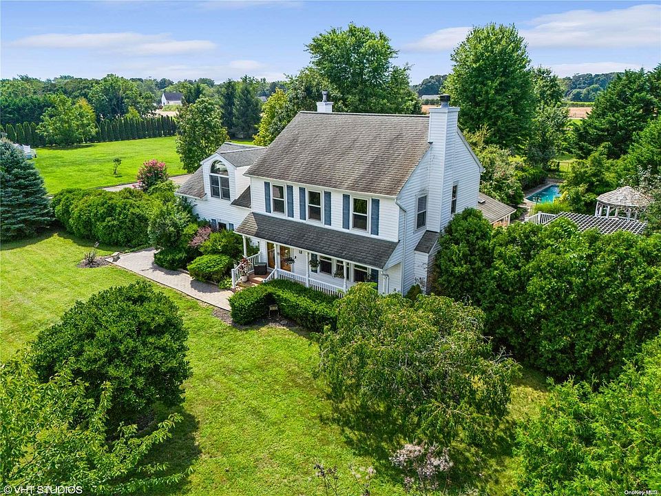 Experience the best of the North Fork in Mattituck! This expansive residence offers breathtaking views over preserved farmland and incredible sunsets. Located in the heart of the North Fork Ag Belt, this property is just moments away from renowned vineyards, top-tier restaurants, Love Lane shopping, sugar sand beaches, and marinas offering boating and other activities. The well-cared for home features a charming front porch, living room with wood-burning fireplace, eat-in kitchen/dining room, sunroom/den, and expansive decking, perfect for entertaining. Upstairs, enjoy a substantial owner's suite with a full bath, walk-in closet, and private west-facing balcony for sunsets, plus 3 additional bedrooms and a hall bath. Recent updates include an oversized 'Roman' pool, hot tub, and private lawn areas, offering the perfect setting for relaxation and entertainment. With plenty of room for gardening and a cheerful, sunny location, this property is a new addition to the North Fork market, offering you the opportunity to have it all., Additional information: Interior Features:Lr/Dr