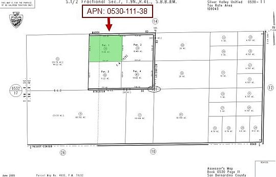 This 11.06-acre parcel is located in the quiet desert community of Newberry Springs, just east of Barstow with easy access to I-15 and Hwy 40. Situated along Mauka Rd, only 700 ft from Greenview Rd, the property offers Rural Living (RL-5) zoning with a 5-acre minimum. Permitted uses include single-family or manufactured homes, agriculture, livestock, agritourism, bed & breakfasts, and more. Subdivision is also possible, making it a flexible long-term investment.