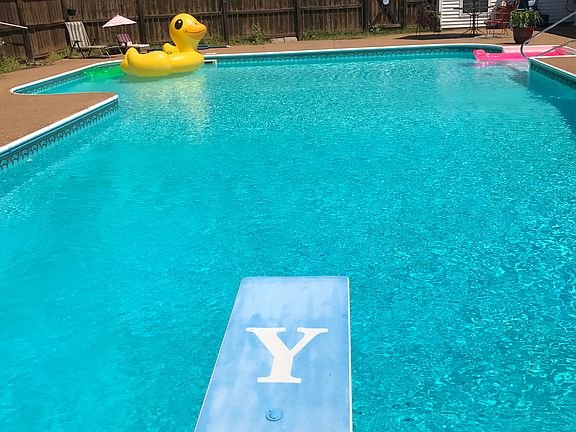 4 BR, 2.5 BA, open floor plan. Kitchen has tons of cabinets, pantry, new tile throughout entire house,new carpet in three rooms,breakfast bar and built in appliances. Formal dining. Very large pool for social gatherings and parties. Over-sized living room. Master bedroom with his/hers closets and vanities. 4 yr old water heater, 3 yr old CHA, 3 year old roof. 4 apple trees, 3 peach, 1 pear, and 3 plum trees on the property