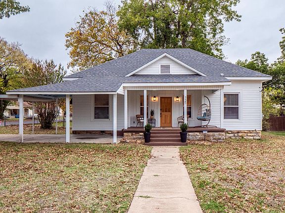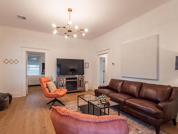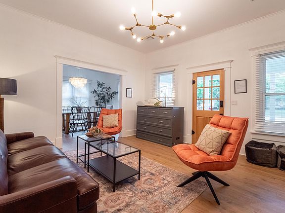Temporary or relocation rental perfection! Completely reimagined and updated, this all bills paid, fully furnished and stocked home features modern farmhouse flair with convenience, comfort and smiles at every turn. Its light and bright floor plan sleeps 9 with 3 bedrooms (1 king, 1 queen, 3 twins and 1 full murphy in the living room) and 2 full baths make morning routines a breeze. The modern kitchen features a charming island perfect for snacks and conversation. A spacious layout encourages everyone to gather, cook and entertain together. A beautiful dining area embraces long family meals and late night visits. The primary bedroom features a smart tv and an ensuite bath with double sinks. You'll also enjoy smart tvs in both guest rooms as well. Enjoy outdoor time as you grill on the back patio or enjoy an evening by the propane fire pit under the Edison lights. A full sized laundry room, private master ensuite, fun game nook, shady fenced back yard, and covered parking encourage you to make this home, your home, whether for just one night or an entire year. All bills paid (water, gas, electric, basic cable and high speed internet) No smoking No pets
