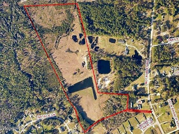 ***10.69acres sold of the 25.12acres listed. *** Exceptional cost savings opportunity to purchase 25.12 acres of mostly cleared land, featuring a natural tree buffer and a 1-acre stocked pond. This property has a 22ft road frontage (same width as a 2 car driveway) on McCausley Rd with a recently installed culvert making access easier. Surveyed and an active 4-bedroom septic permit, this property saves you time and money as the sellers have already done the hard work! No HOA and No City taxes. Zoned RA - Residential Agricultural, it supports residential, agricultural, and some commercial uses. Conveniently located near 2 public boat ramps on the Intracoastal Waterway, and just minutes from Camp Lejeune, Jacksonville and Swansboro making this property deal for outdoor enthusiasts who value urban conveniences. Abundant wildlife enhances its natural allure. Whether you dream of a modern farmhouse or a rustic cabin with a private dock, this land can fulfill those visions. Enjoy peaceful water views, fishing afternoons, or bonfire-lit evenings under the stars. Seize the chance to blend nature with urban amenities in your perfect lifestyle tailored to you.
