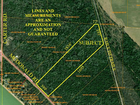17 ACRES FOR SALE NEAR CHEBOYGAN ON THE RAILS TO TRAILS. This land is wet in front off McDonald Rd. There does appear to be a higher spot near the north end of the lot. You can see an old cement culvert in the ditch. You may also enter off the Rails to Trails. Seller believes the ground is higher in the back. Please call with any questions.