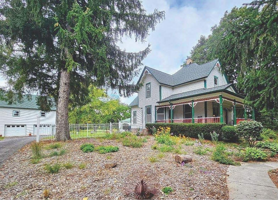 Grape arborSurrounded by mature landscapeRefinished fir hardwood floorBacks to martins woodsCharming wraparound front porchGranite countersStainless steel appliances